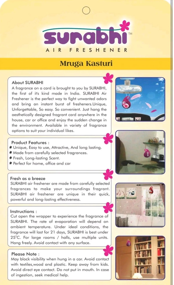 Whether you're driving to work, relaxing at home, or hosting guests, the Surbhi Air Freshener ensures a pleasant and inviting atmosphere wherever you go.